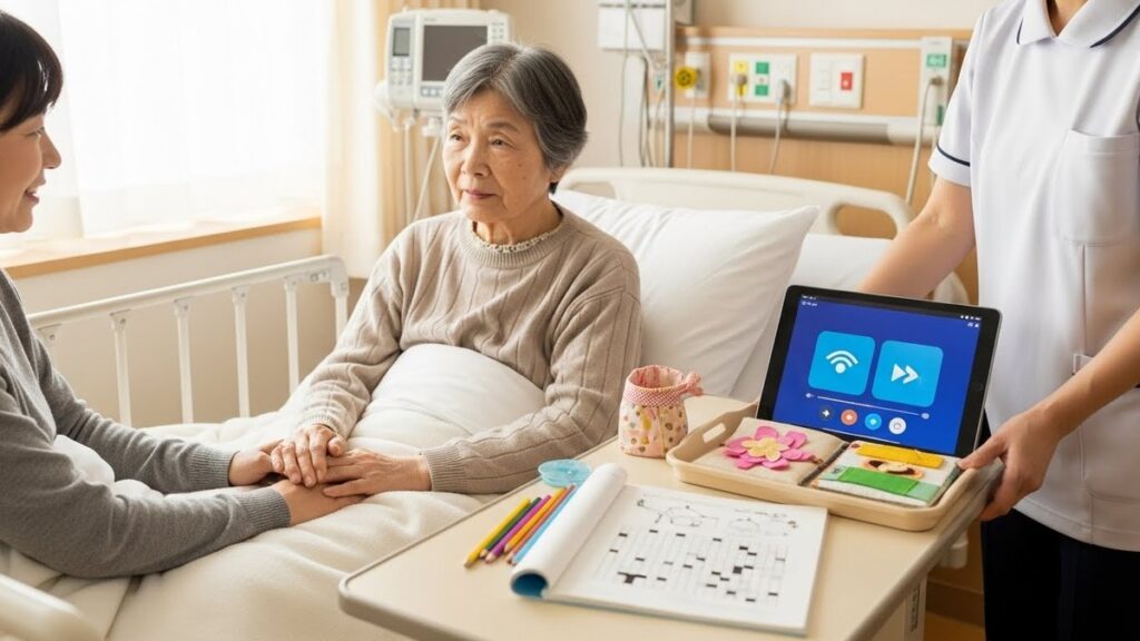 入院中のおばあちゃんが退屈しないように、音楽やオーディオブック、塗り絵など手軽にできる6つの暇つぶしを紹介します。寝たきりや視力・聴力に合わせた選び方や家族ができる簡単なサポート法も解説します。病室で準備すると喜ばれるグッズや会話の問いかけ例も載せているので参考にしてください。 -