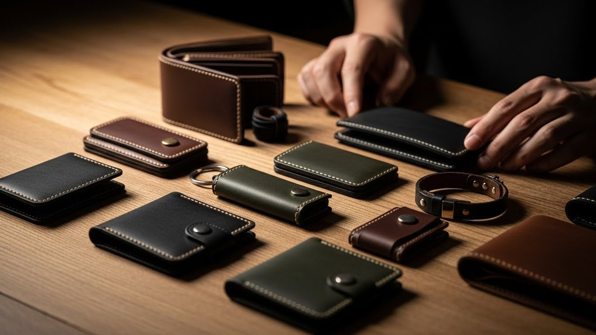 レザー小物は男性に人気の高いジャンルです。財布、カードケース、キーケースなどは毎日使うため、耐久性と経年変化が評価されます。厚みや手触り、縫い目の処理が品質の印象を左右するので丁寧に作ることが大切です。