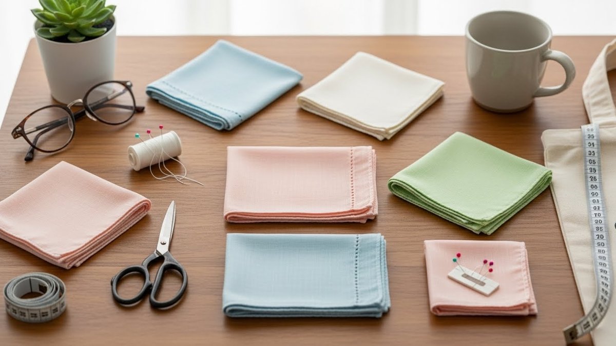薄いハンカチをコースターや小さなランチマットに使うと、食卓の印象を変えられます。アイロンでしっかり伸ばし、布端を折り返して縫うだけで簡単に整った見た目になります。複数用意すれば来客時にも重宝します。